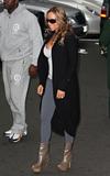Mariah opted for all kinds of stretchy grey comfort, she did kick up her heels in some high-heeled boots.