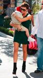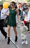 Victoria Beckham,snapped out wiyh her son and she looked sexy in bottle green shorts but her legs are too thin.