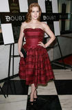 Amy Adams, gave smoking hot pose in red lacy off shoulder knee height outfit teamed it up with black heels and black purse at the "Doubt" premiere in New York City, December 7