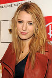 Blake Lively, made her way on red carpet in red jacket and black top teamed with black stockings.