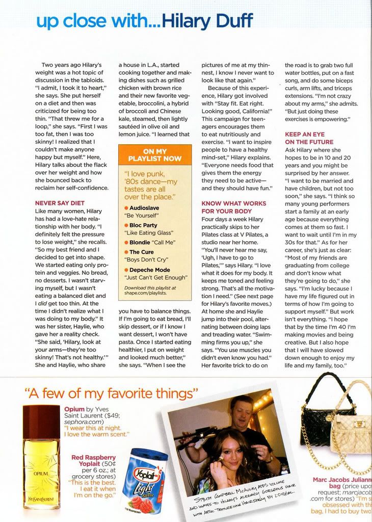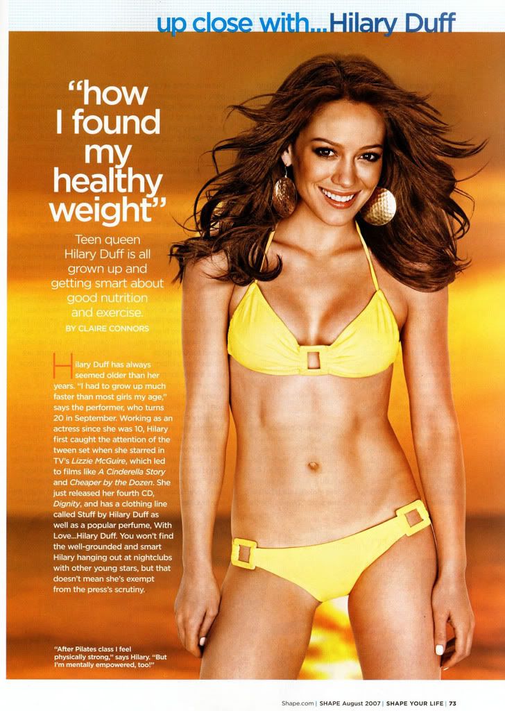 These scans from the August 2007 issue of Shape magazine, and Hilary looked fabulous on the cover and on other pages.
