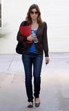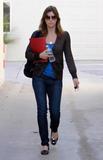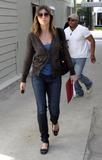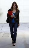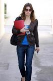 Jessica Biel, snapped out in blue tighty jeans blue top and brown sweater while walking some errands in Hollywood, December 6
