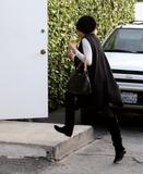 Lindsay Lohan, snapped out in classic combination of black and white, as she wore a white top with black narrow fit jeans and black cap teamed with Chanel bag in Hollywood, December 10